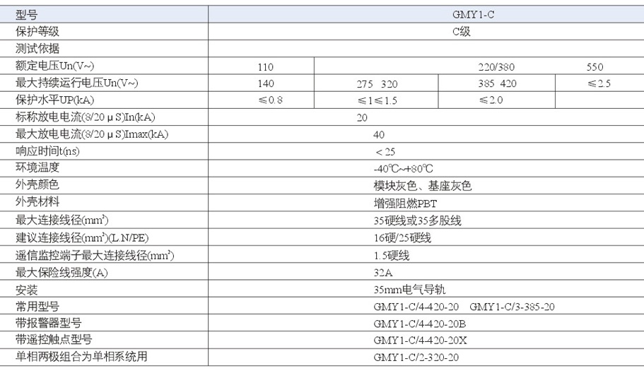 GMY1-C電涌保護器適用于交流50/60Hz,額定電壓至380V及以下的TN-S 、TN-C -S 、TT 、IT等供電系統(tǒng),可作為雷擊時等電位連接,其設計依據(jù)完全符合IEC61643-1 、GB50057 -94(2000年版。外殼設計安裝在35nun電氣導軌上, GMY 1-C 內(nèi)置失效免離裝置,當電涌保護器因過熱、擊穿失效時,失效脫離裝置能自動的將其從電網(wǎng)上脫離,同時可視告警指示器由綠色變成紅色, 并通過報警開關觸點裝置,實現(xiàn)遠程監(jiān)控功能,保護模塊可在有工作電壓的情況下更換。